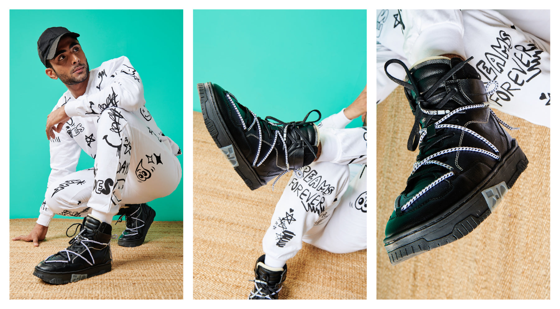 The 703 redefines the classic black high-top sneaker with its proprietary 7-10 sole which sports a wrap-around TPR logo patch detail. It also features flossed laces, exposed foam tongues, and 7-10 branding elements.