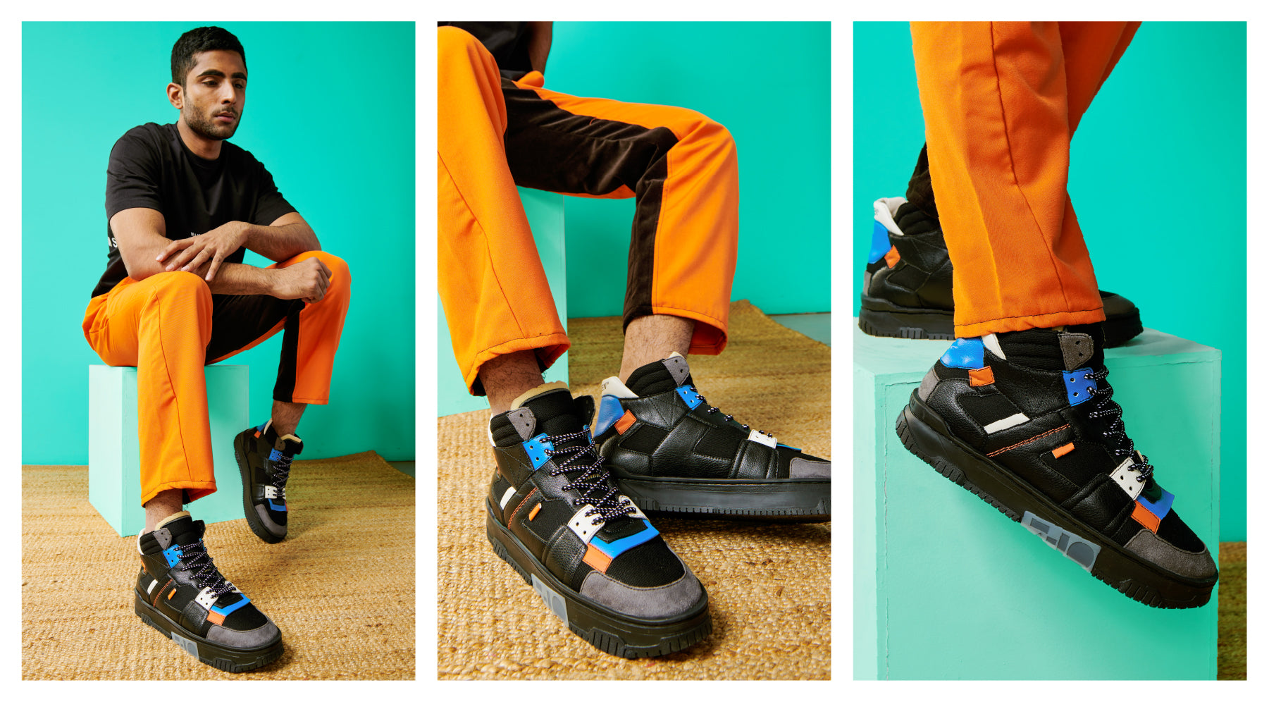 710 black orange blue mid-top sneaker
